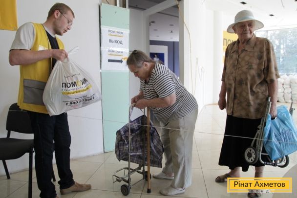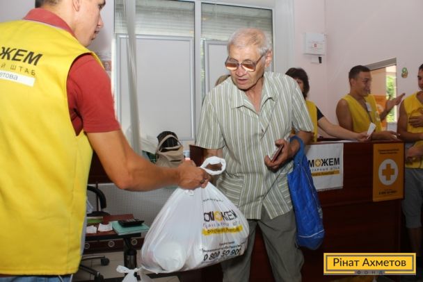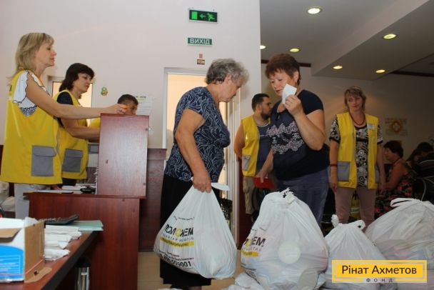 Видача наборів виживання у Ворошиловському і Пролетарському районах Донецька 8 вересня.