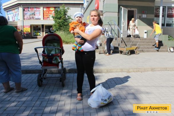 ФОТОЗВІТ. Видача наборів виживання у Ворошиловському і Пролетарському районах Донецька 8 вересня