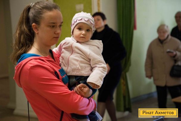 Видача наборів виживання в Куйбишевському районі Донецька, 8 квітня