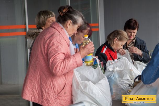 ФОТОЗВІТ. Видача продуктових наборів у Київському й Куйбишевському районах Донецька, 11 квітня