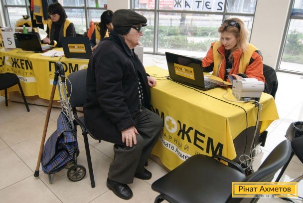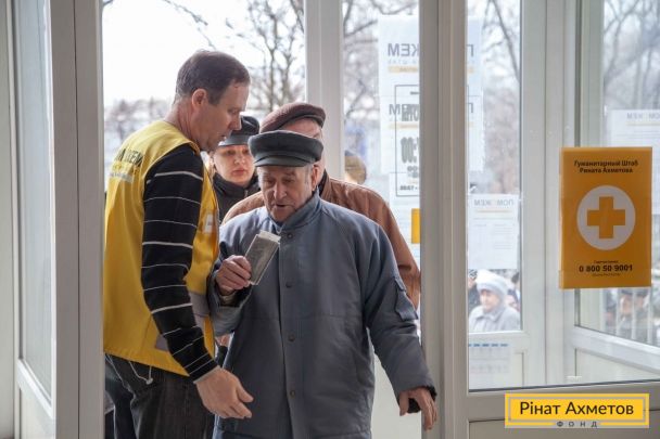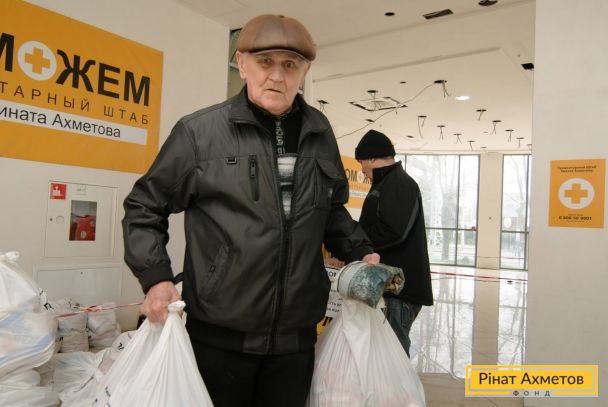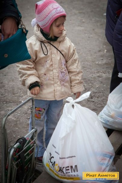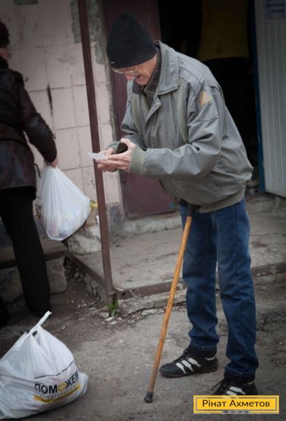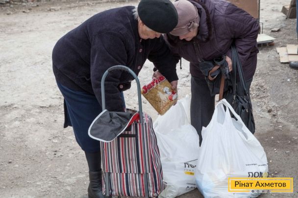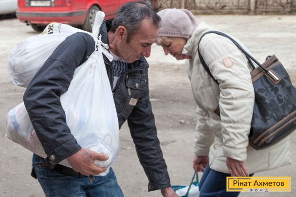 ФОТОЗВІТ. Видача продуктових наборів у Ворошиловському й Кіровському районах Донецька, 4 квітня