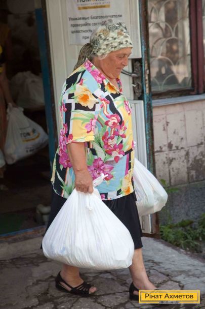 ФОТОЗВІТ. Видавання гумдопомоги в Кіровському й Ленінському районах Донецька 30 червня