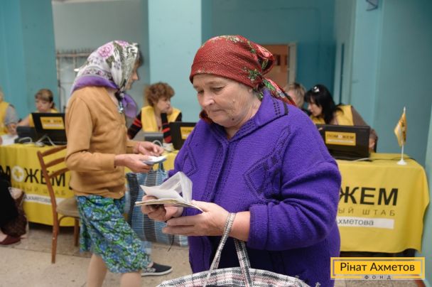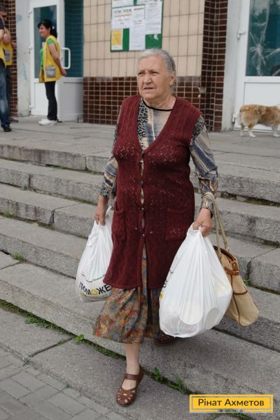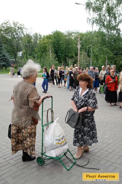ФОТОЗВІТ. Видавання продуктових наборів у Кіровському й Петровському районах Донецька, 6 червня