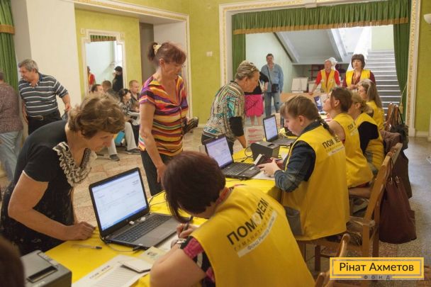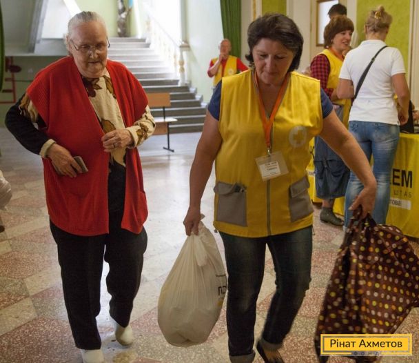 ФОТОЗВІТ. Видавання продуктових наборів у Київському й Куйбишевському районах Донецька, 14 червня