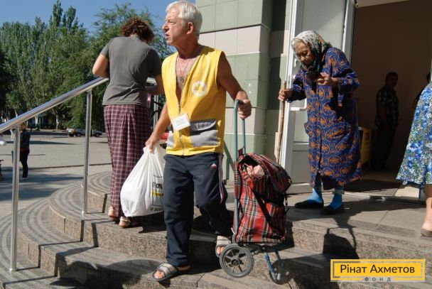 ФОТОЗВІТ. Видавання продуктових наборів у Ленінському і Пролетарському районах Донецька, 6 вересня