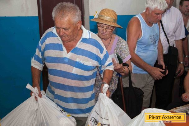 ФОТОЗВІТ. Видавання продуктових наборів у Ворошиловському й Кіровському районах Донецька, 11 серпня