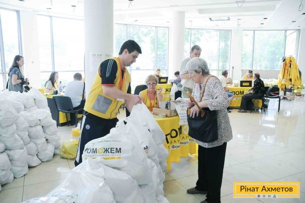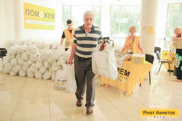 ФОТОЗВІТ. Видавання продуктових наборів у Ворошиловському й Петровському районах Донецька 17 червня