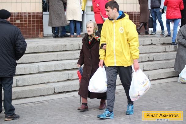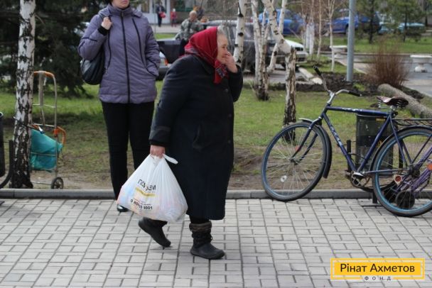 ФОТОЗВІТ. Жителі Петровського та Кіровського районів Донецька отримують набори виживання від Гуманітарного штабу Ахметова, 8 квітня