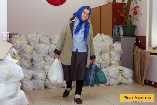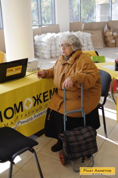 ФОТОЗВІТ. Жителі Ворошиловського та Пролетарського районів Донецька отримують гуманітарну допомогу, 7 жовтня.