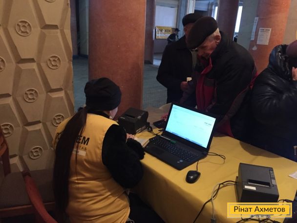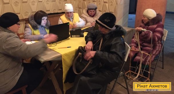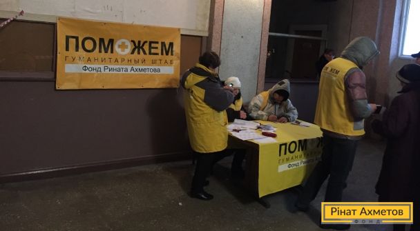 З 3 грудня 2015 року в місті Вуглегірську Донецької області волонтери Штабу Ріната Ахметова почали видавати гуманітарну допомогу мирним місцевим жителям пільгових категорій. Місто розташоване на непідконтрольній території області та серйозно постраждало під час бойових дій, більше половини будівель було зруйновано.