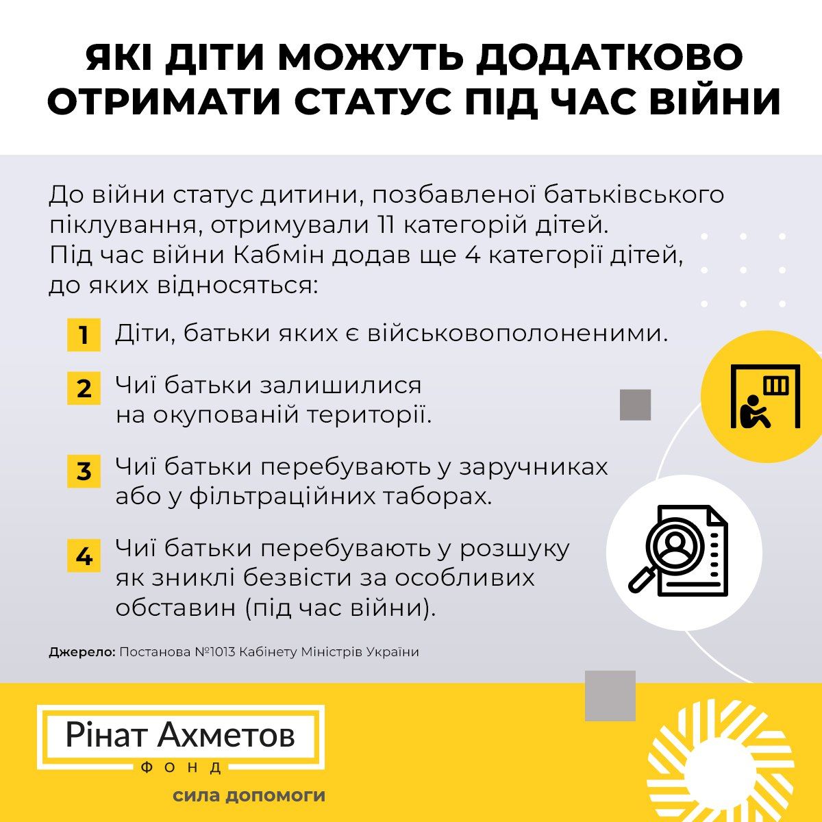 Постанова №1013 регулює обставини, за якими надається статус дитини, позбавленої батьківського піклування.