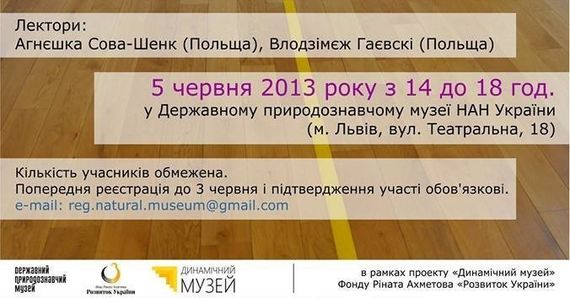 Запрошуємо Вас 5-го червня взяти участь у колоквіумі, який відбудеться у Державному природознавчому музеї Національної академії наук України у Львові про «Музейну експозицію: від проекту до обладнання».