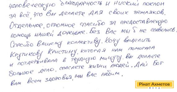«Красно дякую за допомогу донечці!», – лист від вдячних батьків