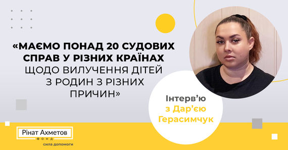 “Маємо понад 20 судових справ у різних країнах щодо вилучення дітей з родин з різних причин”. Інтерв’ю з Дар’єю Герасимчук