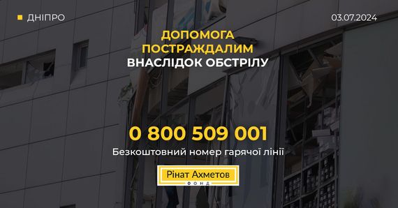 Масована атака на Дніпро 3 липня: Фонд Ріната Ахметова готовий надати допомогу постраждалим
