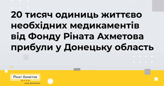Перші 100 тисяч одиниць вже були направлені до лікарень міст і селищ Київської області. Перелік медикаментів був визначений у координації із Міністерством охорони здоров’я України. Допомога надається у рамках програми «Рінат Ахметов – Порятунок життів». За 16 років роботи Фонд Ріната Ахметова допоміг вижити 8 млн. осіб, із них 3.5 млн. були врятовані на Донбасі.