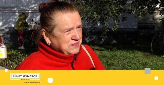 Розповідає, що у перші дні мешканців Охтирки найбільше лякали літаки. Але згодом звикли і вже не тікали — просто ховалися у кімнатах. А от на вулицю виходити було страшно через обстріли, руйнування та танки. Отримуючи продуктовий набір від Фонду Ріната Ахметова, жінка не змогла стримати сліз вдячності, адже живеться родині нелегко.