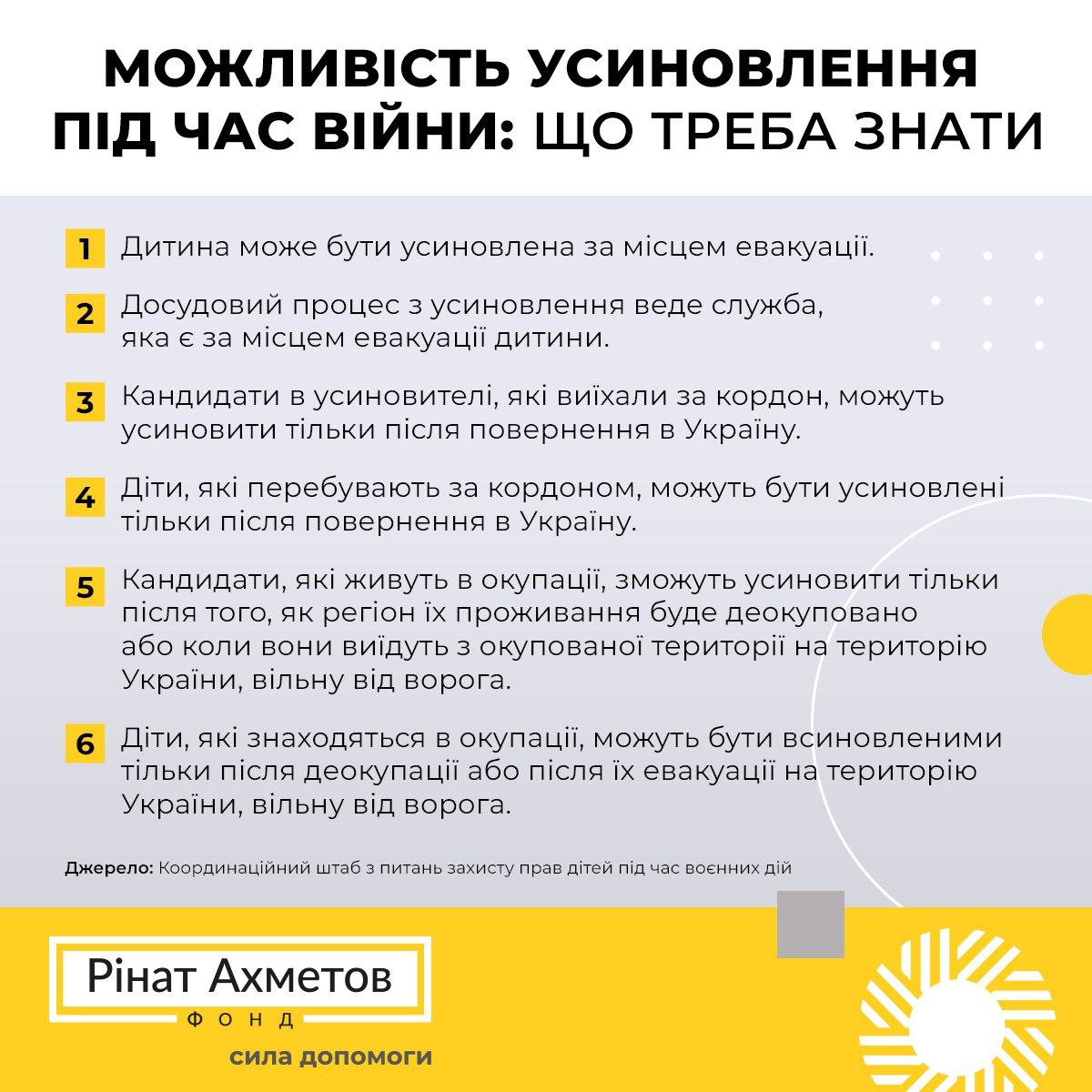 6. Діти, які знаходяться в окупації, можуть бути всиновленими тільки після деокупації або після їх евакуації на територію України, вільну від ворога.