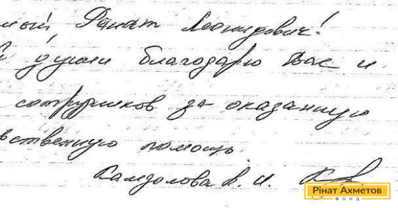 На адресу Гуманітарного штабу Ріната Ахметова постійно приходять листи подяки. Мирні люди, які проживають у зоні воєнного конфлікту на Донбасі, дякують за надану допомогу.