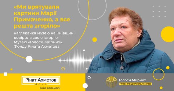 «Ми врятували картини Марії Примаченко, а все решта згоріло»: наглядачка музею на Київщині довірила свою історію Музею «Голоси Мирних» Фонду Ріната Ахметова