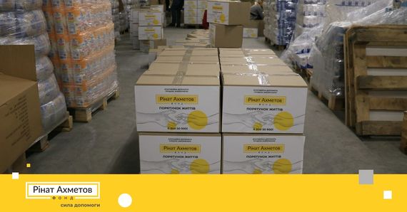 До складу наборів увійшли: макаронні вироби, борошно, цукор, тушковане м‘ясо, паштет і печиво. Загалом такі набори від Фонду Ріната Ахметова отримають 200 тисяч українців.