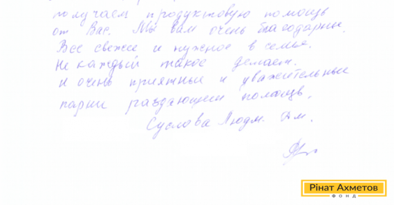 На адресу Гуманітарного штабу Ріната Ахметова постійно приходять листи подяки. Мирні люди, які проживають у зоні воєнного конфлікту на Донбасі, дякують за надану допомогу.