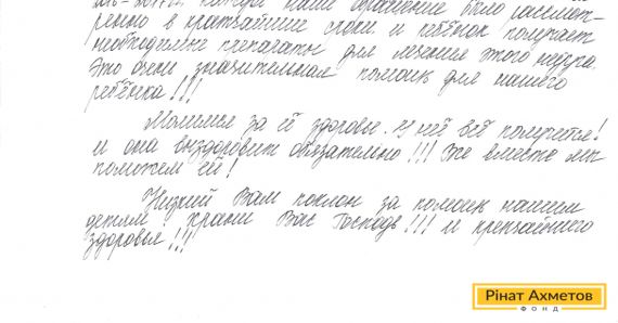 На адресу Гуманітарного штабу Ріната Ахметова регулярно приходять листи подяки від мирних жителів Донбасу. За три роки роботи Штаб безперервно надавав допомогу тим, хто гостро потребував підтримки. Люди, які змушені проживати в зоні воєнного конфлікту на Донбасі, пишуть Рінату Ахметову слова подяки за надану допомогу.