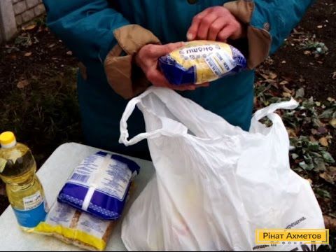 Нам надіслали новий огляд гуманітарної допомоги. Пенсіонерка перевіряє дорослий продуктовий набір. «Чудова річ для людей похилого віку, які живуть у цій воєнній зоні», – каже одержувачка допомоги.