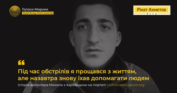 «Під час обстрілів я прощався з життям, але назавтра знову їхав допомагати людям»: волонтер із Харківщини довірив історію Музею «Голоси Мирних» Фонду Ріната Ахметова