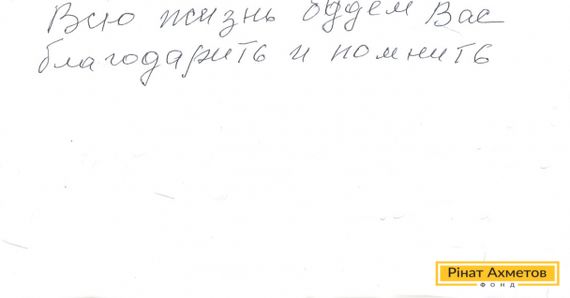 На адресу Ріната Ахметова та Гуманітарного штабу прийшов лист від двох жительок Куйбишевського району Донецька. Марія Павлівна й Людмила Яківна дякують Штабу за допомогу пенсіонерам і дітям.