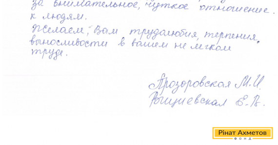 На адресу Гуманітарного штабу Ріната Ахметова прийшов лист від мешканок Горлівки. Жінки дякують Штабу за продуктову допомогу.