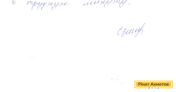 На адресу Гуманітарного штабу надійшов лист від мешканки Макіївки. Валентина Назарівна дякує Рінату Ахметову і волонтерам Штабу за допомогу, увагу і співчуття до пенсіонерів.