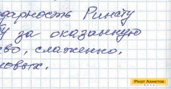 Зі словами подяки на адресу Ріната Ахметова й «мобільних» волонтерів до Гуманітарного штабу прийшов лист від сім’ї Семенових, яка мешкає в Донецькій області.