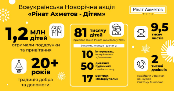У грудні 2023 року Фонд Ріната Ахметова привітав понад 81 тисячу дітей, серед яких дітлахи у: