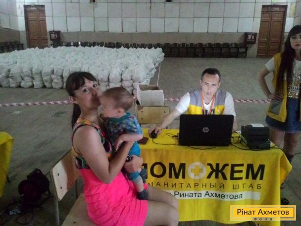 «В Амвросіївку мобільні волонтери Гуманітарного штабу приїхали вже вдруге, оскільки потреба в допомозі не зменшилася якщо, порівняти з попереднім періодом. Для багатьох сімей продуктовий набір від Ріната Ахметова став істотною підмогою. Тому волонтери працювали в місті упродовж 5 тижнів у режимі напівстаціонарного пункту. За цей час видано 4079 дорослих продуктових наборів і 336 дитячих, для сімей із дітьми віком до 35 місяців», – розповів Андрій Санін, керівник донецького логістичного центру Штабу на «Донбас Арені».