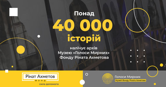 Архів Музею «Голоси Мирних» Фонду Ріната Ахметова вже налічує понад 40 тисяч історій — це наймасштабніший у світі архів історій мирних мешканців України, які постраждали від війни. Музей збирає свідчення тих, хто вижив, щоби весь світ пам’ятав і ніколи не пробачив воєнні злочини Росії проти України.