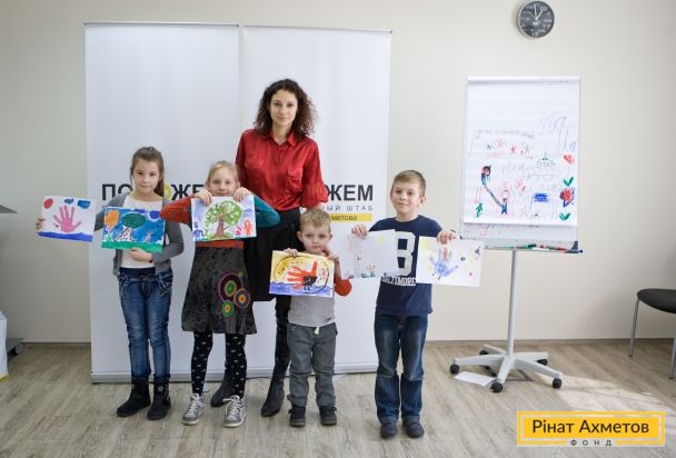 Під керівництвом Олени Анпілогової, фахівця Психологічної служби Штабу Ріната Ахметова, дві групи дітей різного віку — від 4 до 7 років і від 8 до 12 років — малювали, вчилися працювати в команді і… довіряти одне одному.