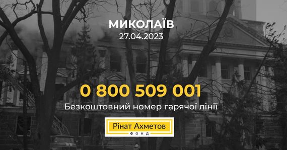 Фонд Ріната Ахметова готовий надати допомогу всім постраждалим унаслідок ракетного обстрілу Миколаєва, який стався в ніч на 27 квітня. А саме: