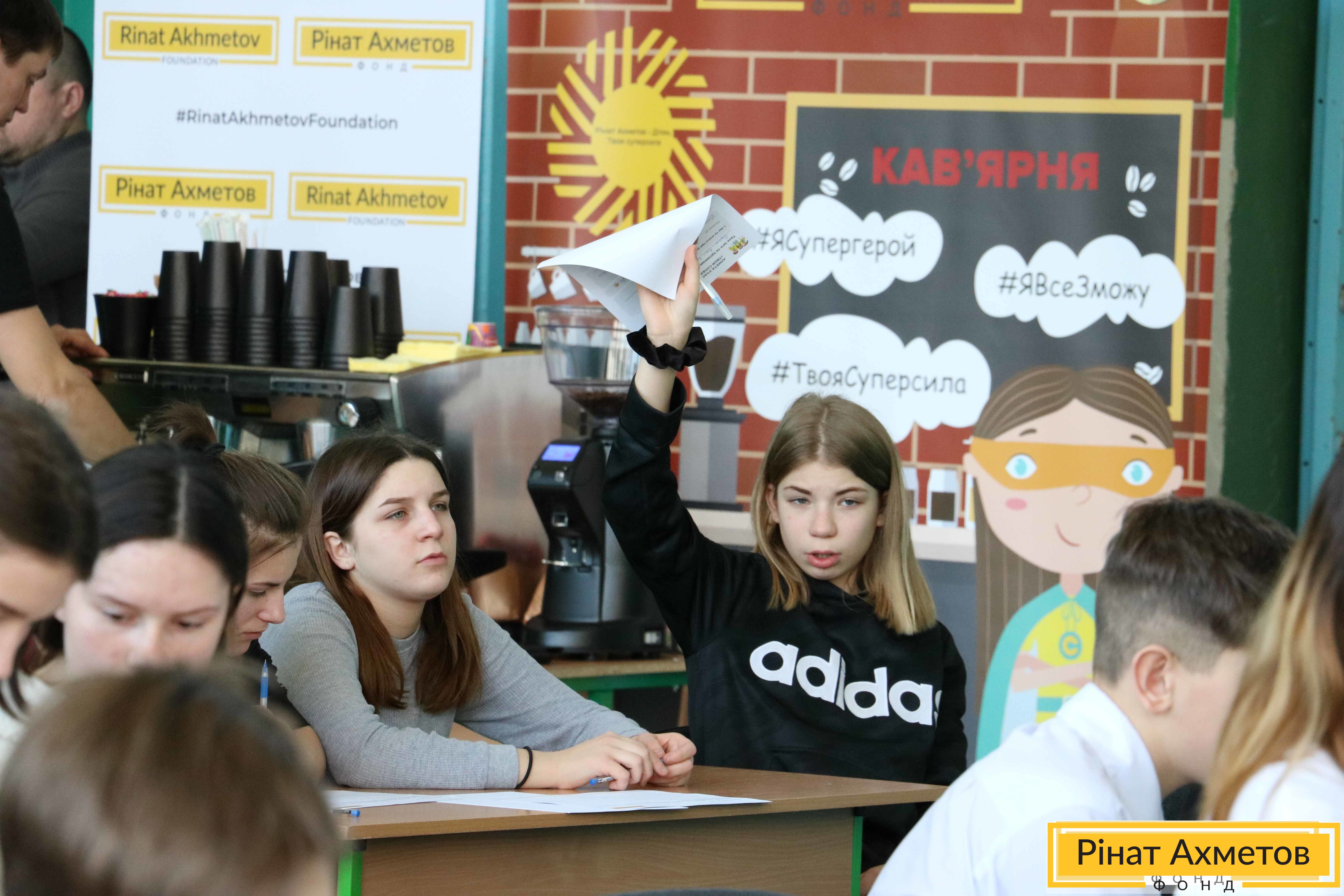 «Сьогодні дітей було набагато більше, ніж у перший наш день, проте їхню увагу та інтерес ми не втратили, – ділиться враженнями амбасадор Фонду Ріната Ахметова Максим Сікора. – З цього я роблю висновок, що той матеріал, який ми пропрацювали в рамках проєкту "Твоя суперсила", дітям необхідний і цікавий. Теми як зробити перший крок у свою професію, як скласти резюме, як узагалі вибрати, ким хочеш стати – це якраз для 14–15 років. А отже, ми тут вчасно. Захід триває дві години, а діти розходитися не хочуть. Дівчата, які підходили зробити селфі, на запитання: "Як вам, не нудно?" – відповіли: "Ні, нам би ще!"».
