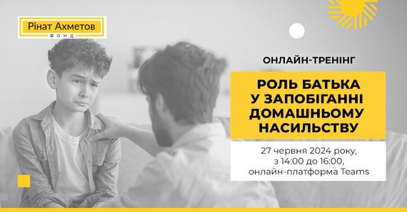 Програма «Рінат Ахметов ‒ Дітям. Сирітству ‒ ні!» повідомляє про початок реєстрації на новий онлайн-тренінг на тему «Посилення функції батька як профілактика домашнього насильства, емоційного та фізичного насильства в сім’ї».