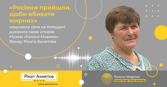 «Росіяни прийшли, щоби вбивати мирних»: мешканка села на Київщині довірила свою історію Музею «Голоси Мирних» Фонду Ріната Ахметова