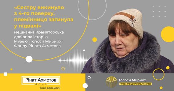 «Сестру викинуло з 4-го поверху, племінниця загинула у підвалі»: мешканка Краматорська довірила історію Музею «Голоси Мирних» Фонду Ріната Ахметова