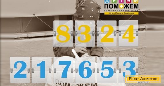 Минулого тижня, 18–22 травня 2015 року, 8 324 дитини до 2-х років, що проживають у Донецькій і Луганській областях, у межах проекту «Допоможемо дітям» отримали дитячі набори від Гуманітарного штабу Ріната Ахметова.