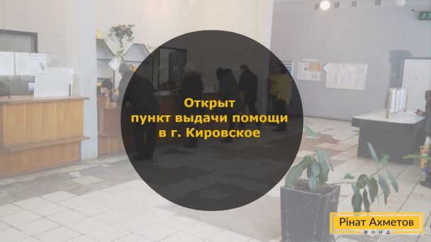 Сьогодні, 16 лютого, Гуманітарний штаб Ріната Ахметова відкрив постійний пункт видавання допомоги мирним жителям м. Кіровське Донецької області. До цього Штаб завозив благодійну допомогу в місто без відкриття пункту. Всього за період роботи Гуманітарного штабу мирним жителям Кіровського було видано 20 000 продуктових наборів.