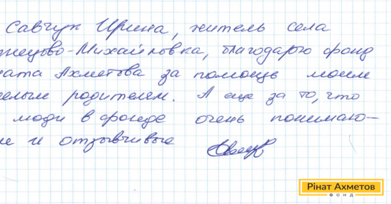 Такий лист ми отримали від жителя села Кузнецово-Михайлівка, у яке раніше доставляла гуманітарну допомогу мобільна бригада Штабу Ріната Ахметова. З 28 лютого роботу Штабу на непідконтрольній території Донецької області заблоковано. І жителі цього села більше не можуть отримувати життєво необхідну допомогу.