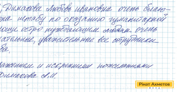 «Спасибі за допомогу нужденним людям», – лист із Зугреса