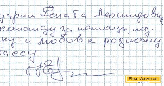 На адресу Гуманітарного штабу прийшла подяка від жителя Калінінського району Донецька. «Дякуємо Рінату Леонідовичу та його команді за допомогу, підтримку й любов до рідного Донбасу», – йдеться в листі.