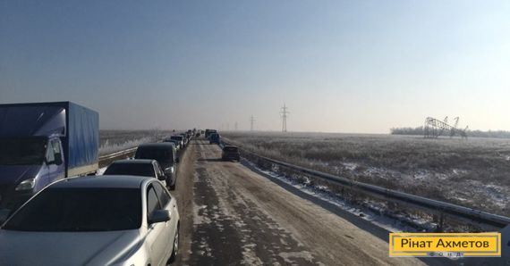 «7:19. На нулевом, в сторону Марьинки, примерно 100 машин»