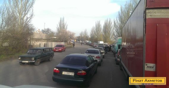 «Направление в сторону Мариуполя: родственник вчера вечером стал в очередь, но не прошел. Народ составил список (он был 160-м). Часть машин уехала в Донецк, он ночевал в Еленовке. В половине 5-го стал в свою очередь 160-м(список контролировался). В 10-30 прошел Еленовку и стал в очередь на Перлыне(примерно 2 км).На Новотроицком б/п очереди практически нет(на знаке 30)».