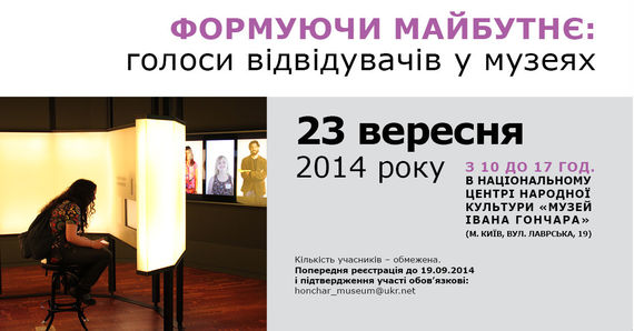 23 вересня 2014 року, з 10:00 до 17:00 у Національному центрі народної культури «Музей Івана Гончара» (м. Київ, вул. Лаврська, 19) відбудеться тренінг для музейників «Формуючи майбутнє: голоси відвідувачів у музеях». Захід буде організовано в межах проекту «Актуальний Музей: стратегія динамічного розвитку» («Динамічний музей» Фонду Ріната Ахметова «Розвиток України») та проекту «Голоси відвідувачів у музеях» (за підтримки Посольства США в Україні).